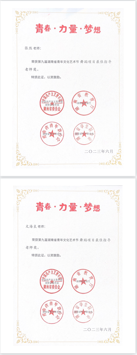 色情动漫 舞蹈系张然、文海良老师荣获第九届湖南省青年文化艺术节“最佳指导老师奖”