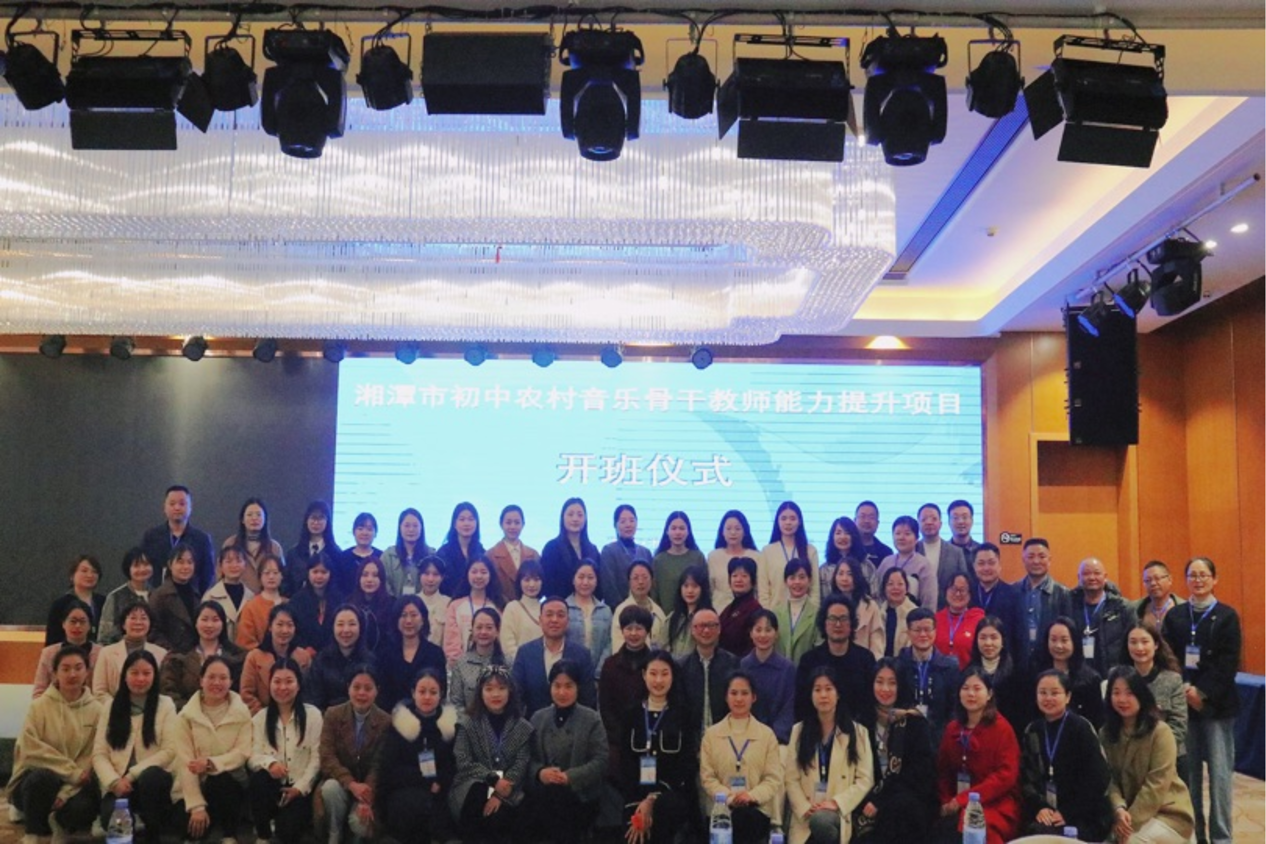 4月23日上午我校与湘潭市教育局,教师发展中心联合举行湘潭市初中农村音乐骨干教师能力提升项目开班仪式。湘潭市教育科学研究院院长成芳、湘潭市教育局教师科科长谭京湘,色情动漫 副院长王育霖教授,音乐系主任杨姝老师出席此次活动。