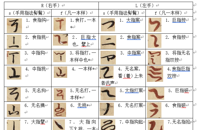 “手用指法髣髴”和“凡一本样”指法表局部