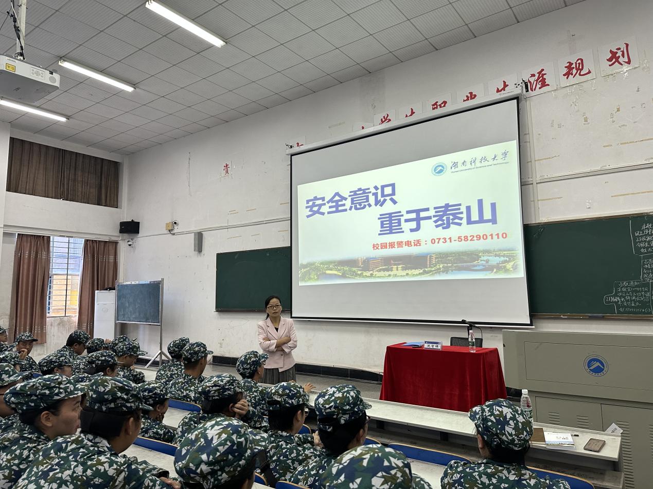 “隐患处处有,安全时时记”,沈智祥强调同学们要注意防火、防盗、防诈骗以及人身安全、财产安全、交通安全等事项,并结合详实的案例向全体新生讲解了电信诈骗中容易被骗的类型、套路以及预防方法,要求广大学生牢固树立安全意识和风险防范意识,共同维护校园安全稳定。