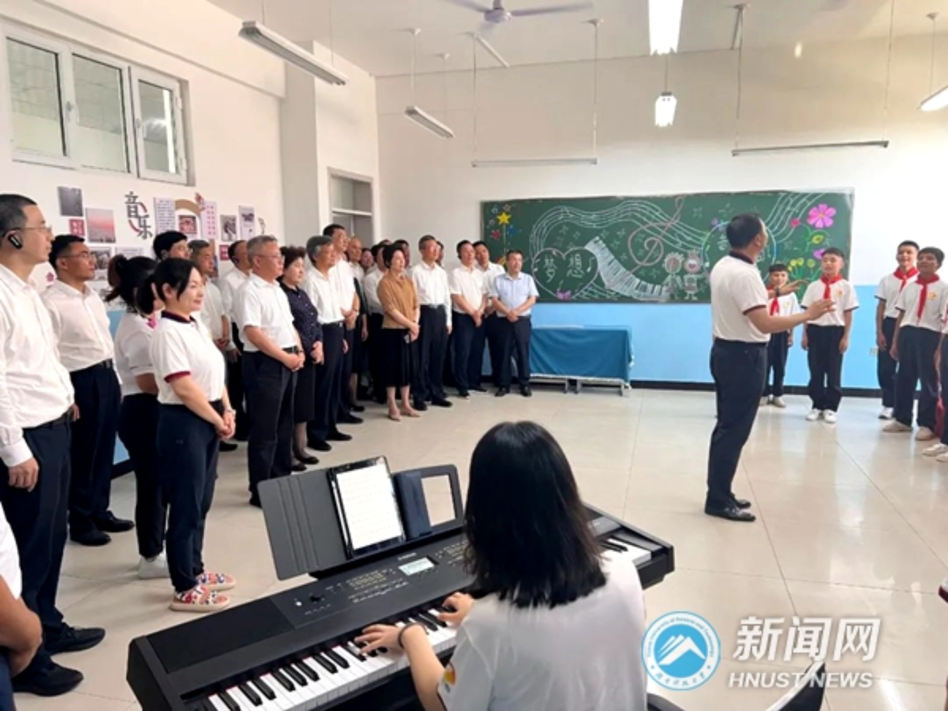 8月16日,省委书记沈晓明带领湖南省党政代表团到吐鲁番考察湖南援疆工作,期间特意来到我校“心与馨”志愿支教服务团队所在的鄯善县阿曼夏学校“红石榴”童声合唱团,观看了“红石榴”童声合唱团演唱,对孩子们优秀的表现和我校文化援疆给予了肯定,并希望文化润疆的方式能总结经验并全域推广。