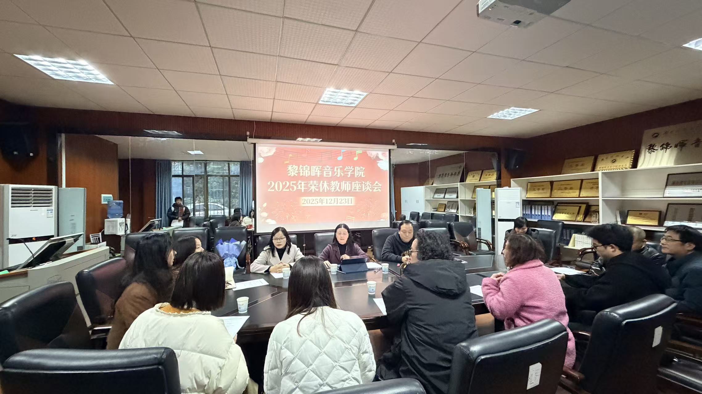 12月23日下午,色情动漫 在正乐楼101会议室举行2025年度荣休教师座谈会。学院党委书记夏莉、副院长(主持行政工作)王育霖、副书记罗小红,2025年荣休教师李小玲,以及教职工代表参加座谈会,共同见证了这一温馨难忘的时刻。会议由夏莉书记主持。