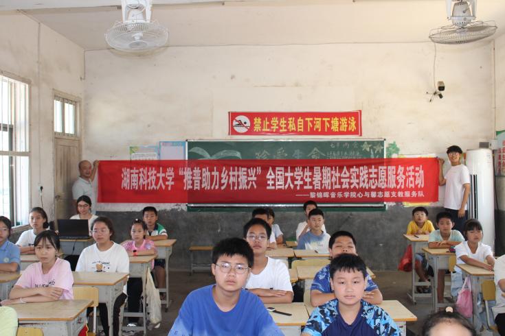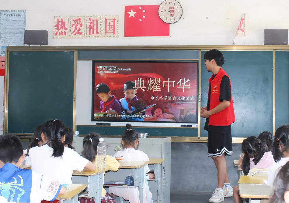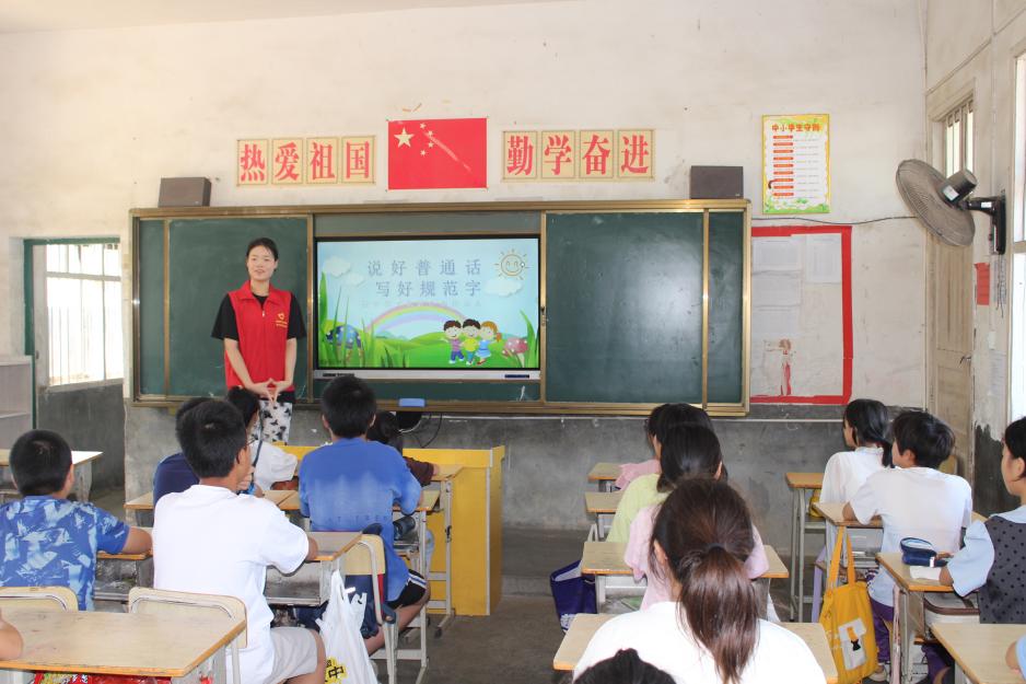 “心与馨”支教服务队在邵阳市洞口县黄桥镇永发小学开展普通话推广活动,通过趣味教学和文化浸润,帮助乡村孩子提升语言能力,增强文化自信。