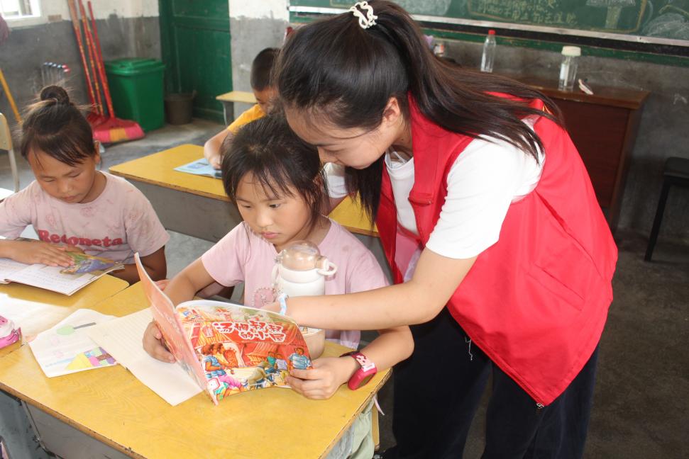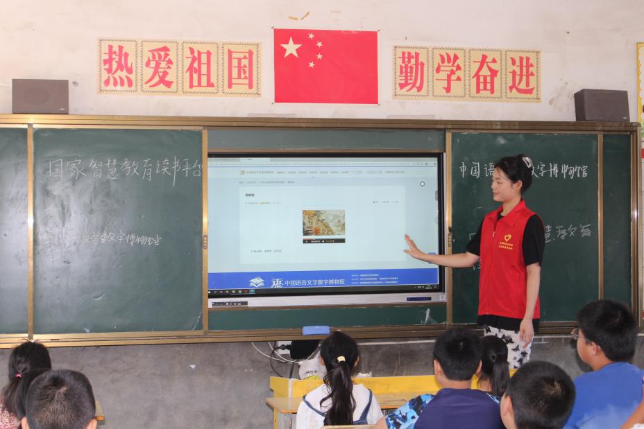 志愿者们利用国家智慧教育读书平台等数字资源,采用“动画跟读+汉字演变”的教学模式,让孩子们从“敢开口”到“读标准”。在“典耀中华”读书会上,孩子们通过中西方经典绘本提升表达能力;朗诵课上,他们逐句学习情感表达,齐诵《中国红》时,教室里充满文化自豪感。