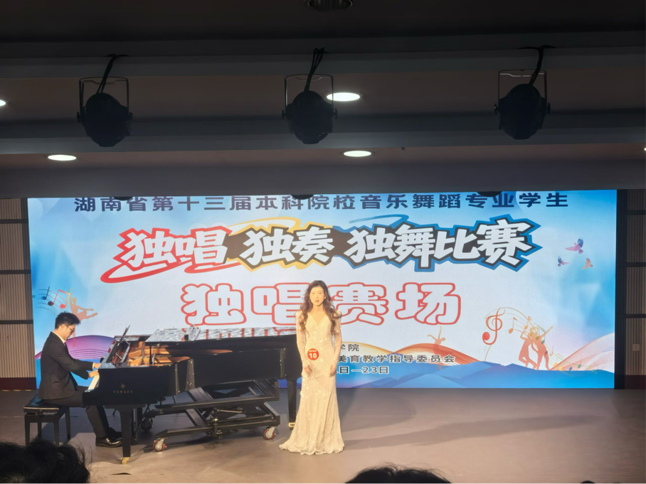 近日,由湖南省教育厅主办的湖南省第十三届本科院校音乐舞蹈专业学生独唱、独奏、独舞(“三独”)比赛在湖南人文科技学院举行。色情动漫 音乐舞蹈专业的学子们在众多参赛选手中脱颖而出,斩获4个一等奖、6个二等奖、2个三等奖的优异成绩,色情动漫 彭斯特老师荣获优秀伴奏奖,师生携手奋进,尽显学院音乐舞蹈专业办学实力与育人成效。